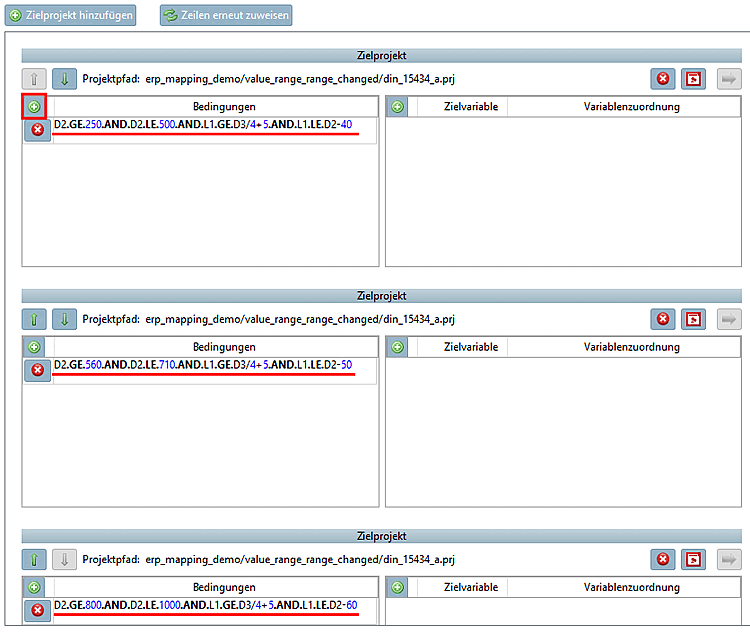 Conditions can be used, for example, to adjust the source value range so that only certain values are mapped. These are then confirmed with the target found during verification, while the others are confirmed without a target. You can find explanations of the syntax under Section 7.8.12.7, “Mathematical functions (feature algorithm ) ”. An example of this can be found at Section 6.10.2.4.16, “Value range: Changed range”.
