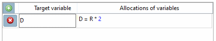 The new variable is selected as target variable, e.g. D and in the second column an algorithm is provided: D = R * 2.