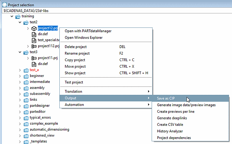 Select the desired project and click on the context menu command Save as Cip [Save as CIP].