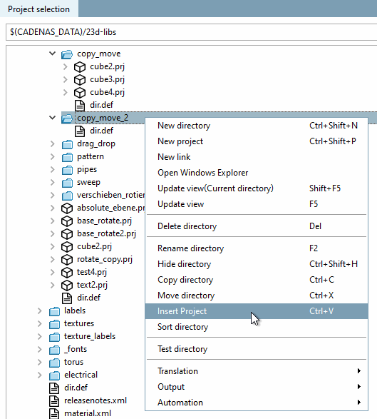 Select the desired directory in which you want to insert the project(s) and click on Insert project.