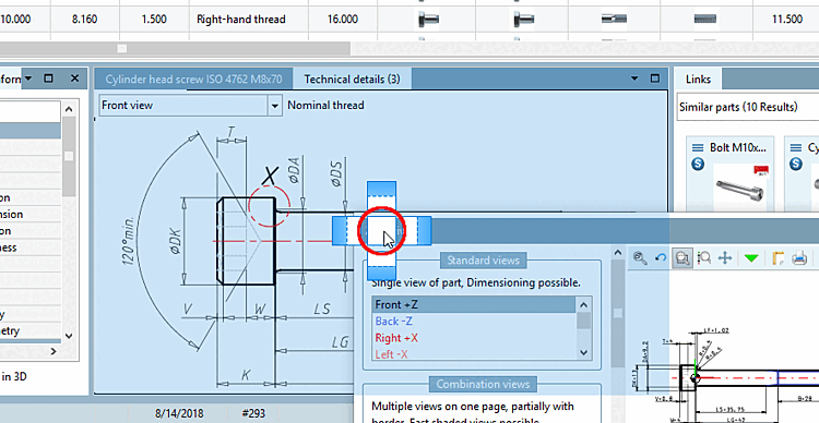 Example 2: The cursor is over the right cross area. -> The right side of the target docking area is marked with transparent blue. When releasing the mouse key the docking window to be positioned is placed in a new docking area on the right side of the marked one.