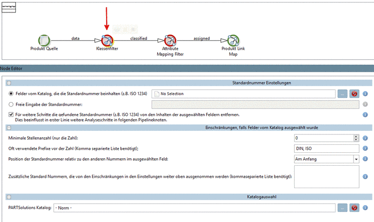 Select the option Fields from catalog containing the standard number (e.g. ISO 1234) and via search button determine the desired field, which in this case means "Norm [Standard]".