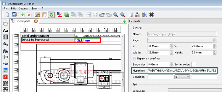 When clicking on the respective element in the PDF datasheet later, the URL or the e-mail program with specified e-mail address (prefix "mailto:"), inserted here, is called up.