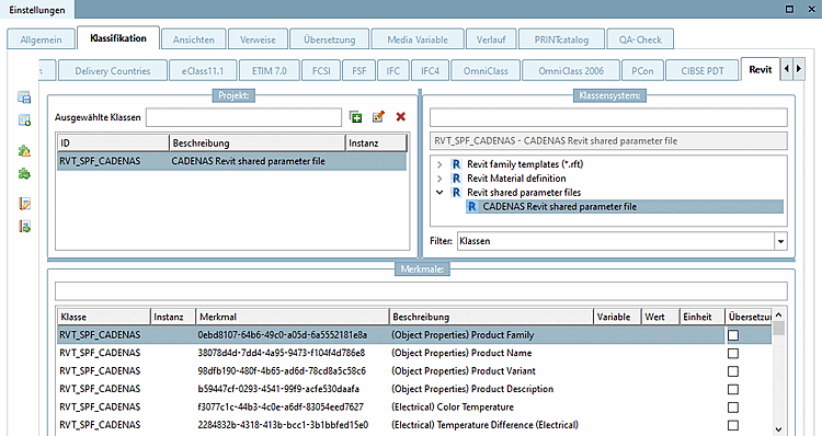 For a value to be available as a shared parameter in Revit, it must be assigned as a characteristic of the class CADENAS Revit shared parameter file.