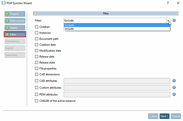 Note It is not only the settings within PLM Synchro that are important, but also settings within Creo. Please refer to the notes under Section 2.3.8.6, “Conversions from Creo to "STEP" format” in ENTERPRISE 3Dfindit (Professional) - Administration.