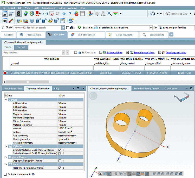 Open PARTdataManager. Your catalog created with PLM Synchro is now displayed in the parts view [Part view] under Structure -> Catalogs.