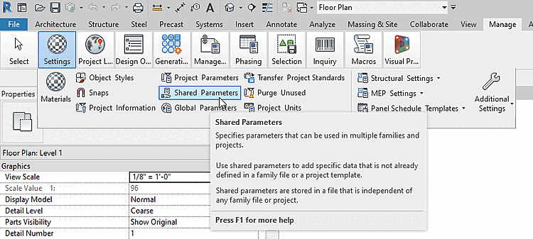 Shared parameters are definitions of parameters that you can add to families or projects. Shared parameter definitions are stored in a file independent of any family file or Revit project.