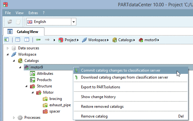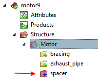 Initial situation: Below the class "motor" the subclass "spacer" has been removed via Remove Class. Afterwards the change had been committed.
