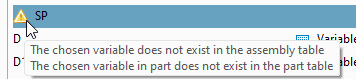 The exact assignment of variables in the assembly table and the variable in the part can be viewed and edited on the Variable assignment Tabbed page.