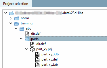 -> In the index tree, the new project „part_xy.prj“ ("single-part-xy") is displayed inclusively the template files (3db, def, tab).