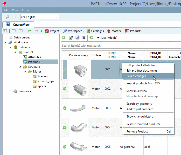 Example 1 - A product has been removed locally (meaning the changes have not yet been committed) and shall be restored