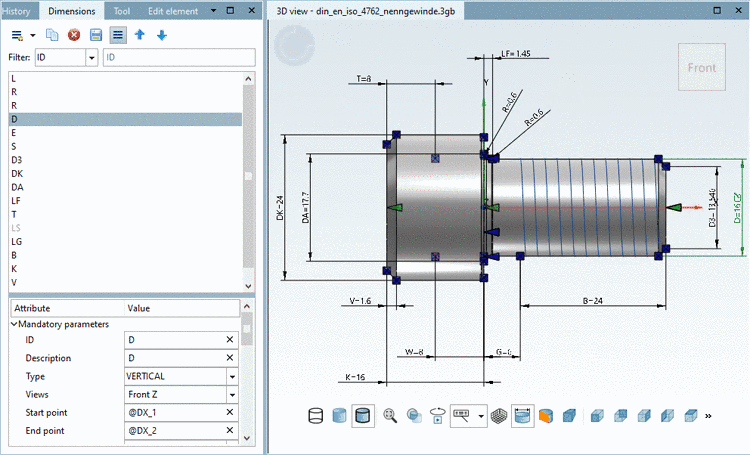 -> As soon as all Mandatory parameters are set, the dimensioning is shown in the 3D view.