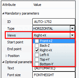 Under Mandatory parameters -> Views, select the desired 2D views on which the dimensioning is to be displayed. Here in the example Front+ Z.