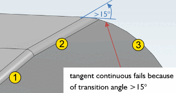 For angles larger than 15 degree the tangent continuous does not take effect.