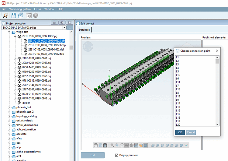 Select the 3db file. All available connection points are now displayed. All points are also displayed in the Select connection point [Choose connection point] dialog box. You can now classify individual connection points, which would not make sense in this case because a large number of connection points are classified in exactly the same way.