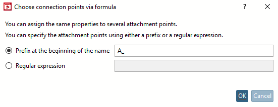 If a large number of connection points are to be classified in the same way, it makes sense to use a prefix or regular expression. In this way, you only have to classify the specified number of points once. To do this, use the context menu command Select connection points via formula [Choose connection points via formula].