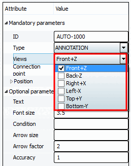 Activate the checkbox for the desired 2D views on which the dimensioning is to be displayed.