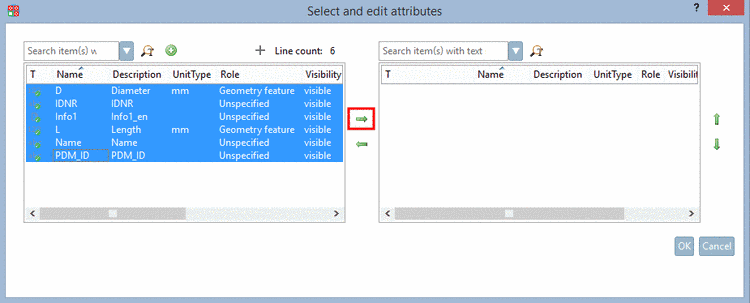 If the respective attribute has been hidden in PARTproject, here, the option is automatically set to invisible and vice versa at the export the setting is used in PARTdataManager.