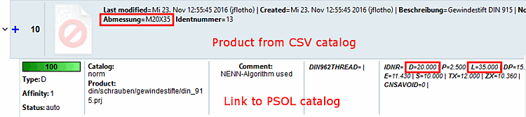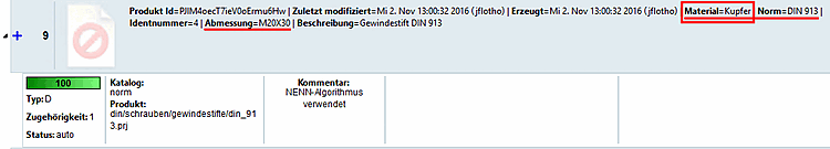 Through consideration of the material column the product DIN 913 with the characteristic M20x30 could be assigned with different materials.