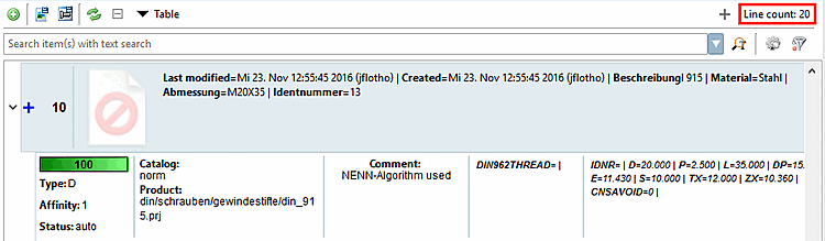 Click on Open all [OpenAll] to view all project lines assigned from the PARTsolutions characteristics tables.