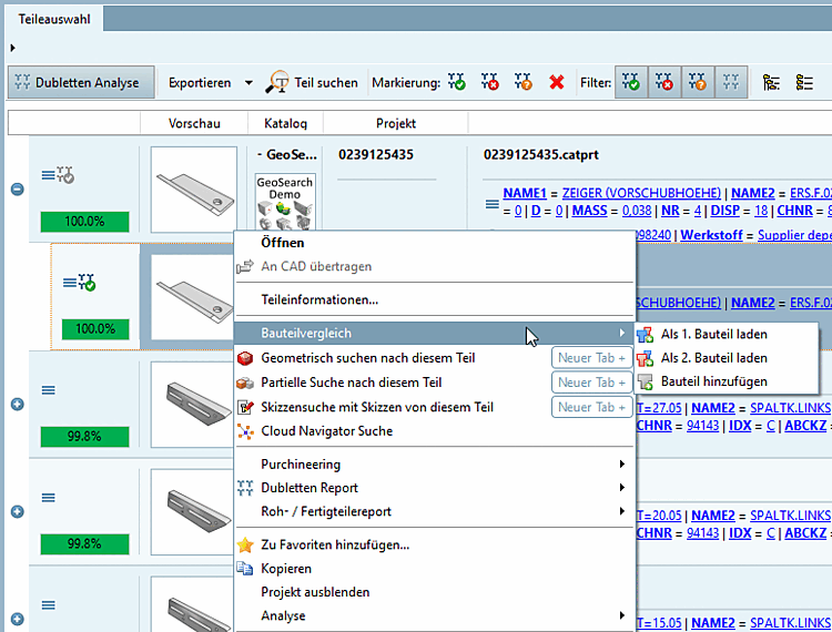 Detailed information on component comparison [Part comparison] can be found under Section 3.1.6.10, “ Part comparison ”.