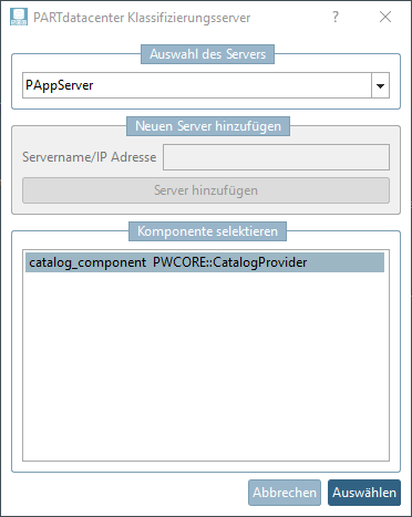 -> The PARTdatacenter classification server [PARTdatacenter Classify server] dialog box opens.