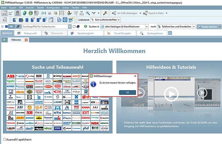 Enterprise 3Dfindit (Professional) and eCATALOG 3Dfindit customers are informed about new releases by means of update notifications [Update notification]: