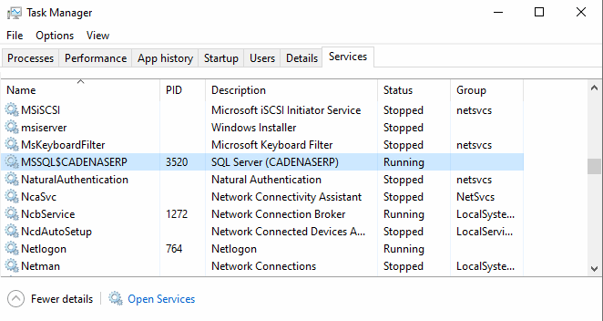 Installed database server running as service