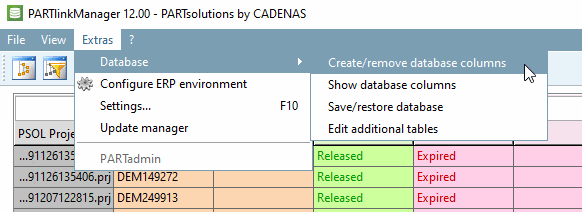 For the column to be displayed in the PARTdataManager column is displayed, two conditions must be met: