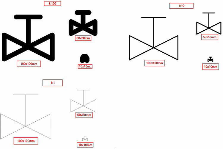 Keep the line thickness as small as possible, so that the symbols are clearly visible with a scale of 1:1 and in addition do not blur in a single spot.