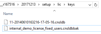 3. Copy the new file into the directory at .../setup/lic/keys and delete any files that are no longer required (or rename the file extension to cnsldbbak).