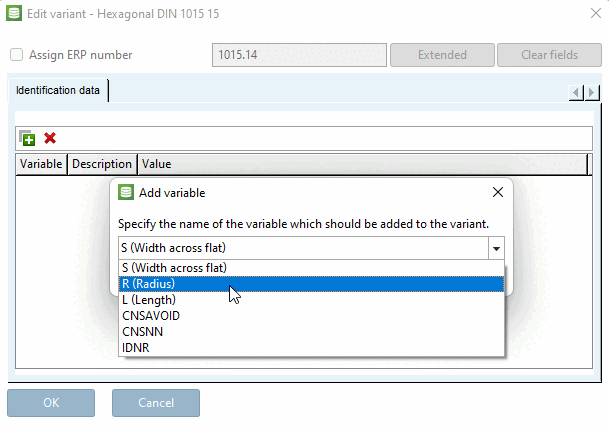 Select a data record and call up the context menu command Edit variant. This method gives you access to the values in the characteristic attribute table. Compare Section 4.12.3, “ Create variant in PARTlinkManager ”.