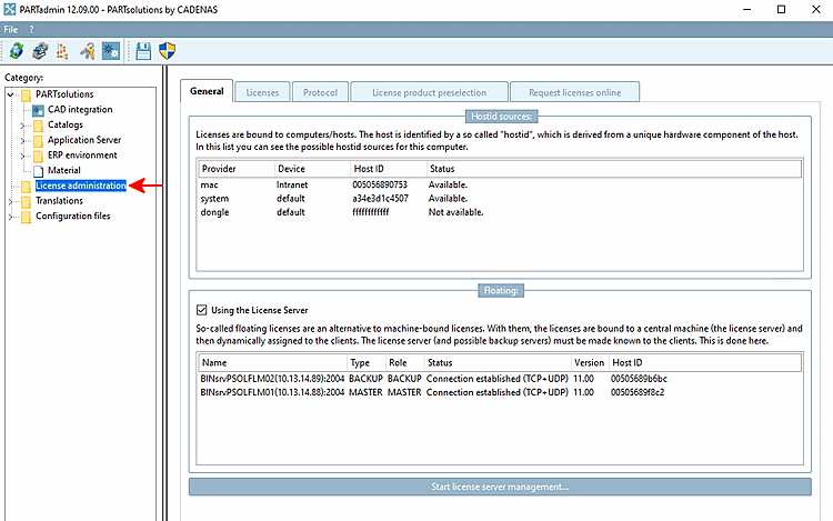 Administration license server (Master/Backup)