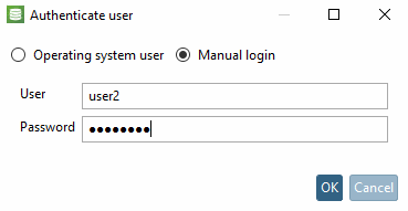 ...allows you to log in as another user. The Authenticate user dialog box then appears.