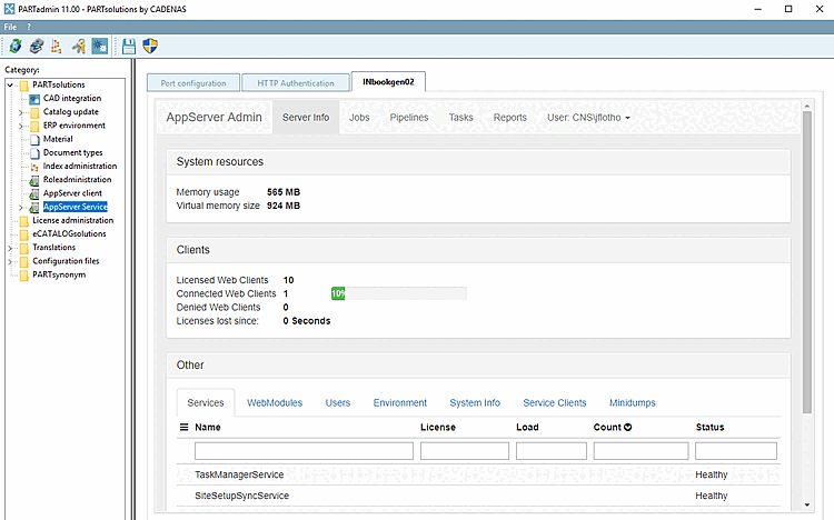 You can display information on the PARTapplicationServer both on the server and on the client. See Section 1.4.5.9, “ PARTapplicationServer Dashboard ”.