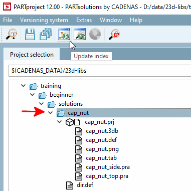 In order for the newly created project to be transferred to the directory structure of the PARTdataManager directory structure, the index [Index] must be updated.