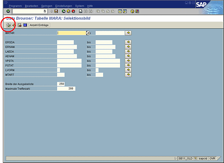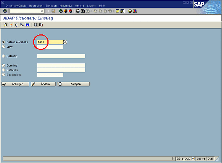 Start transaction se11: