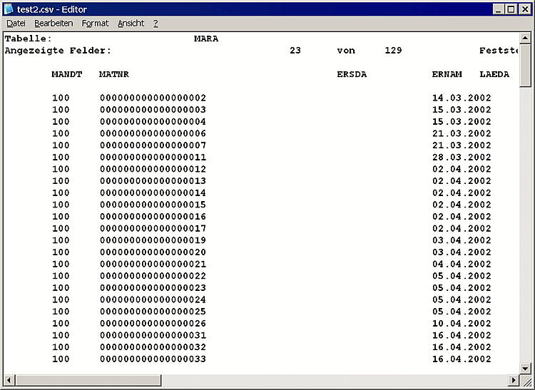 The following screenshots, for example, show the manual CSV export from SAP: