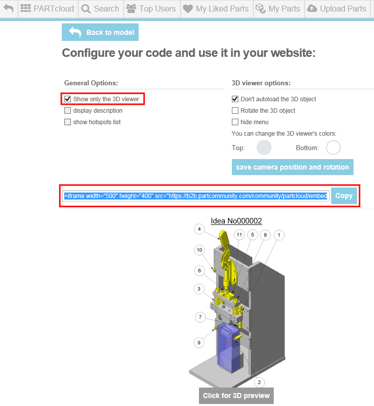 route=part&name=Idea+No000002&model_id=67101The page "Create a code to embed on your website " opens.