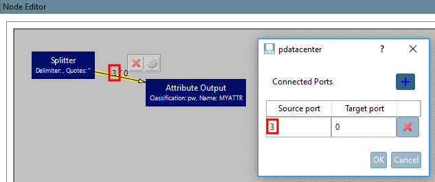 Supposed you have the string „A,B,C,D,E“ and „D“ should be passed on, the option Output all items as list should be deactivated, the separator „,“ should be set and the source port of the outgoing edge set on 3 (index of value; 0 = A, 1 = B, …). (Double quotes are aids, if the separator sign occurs inside the value (e.g. „'A,A','B,B'").)
