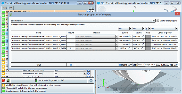 activate the Use for all individual parts [Use for all single parts] checkbox and assign the material for each component separately in the corresponding list fields of the individual components.