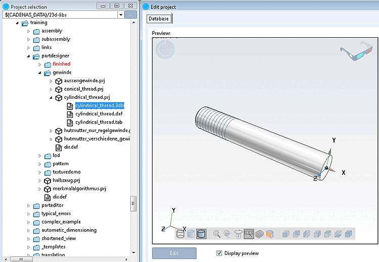 [99] You can find the example with the training catalog installed under $CADENAS/Training/PARTdesigner/Threads/cylindrical_thread.prj.