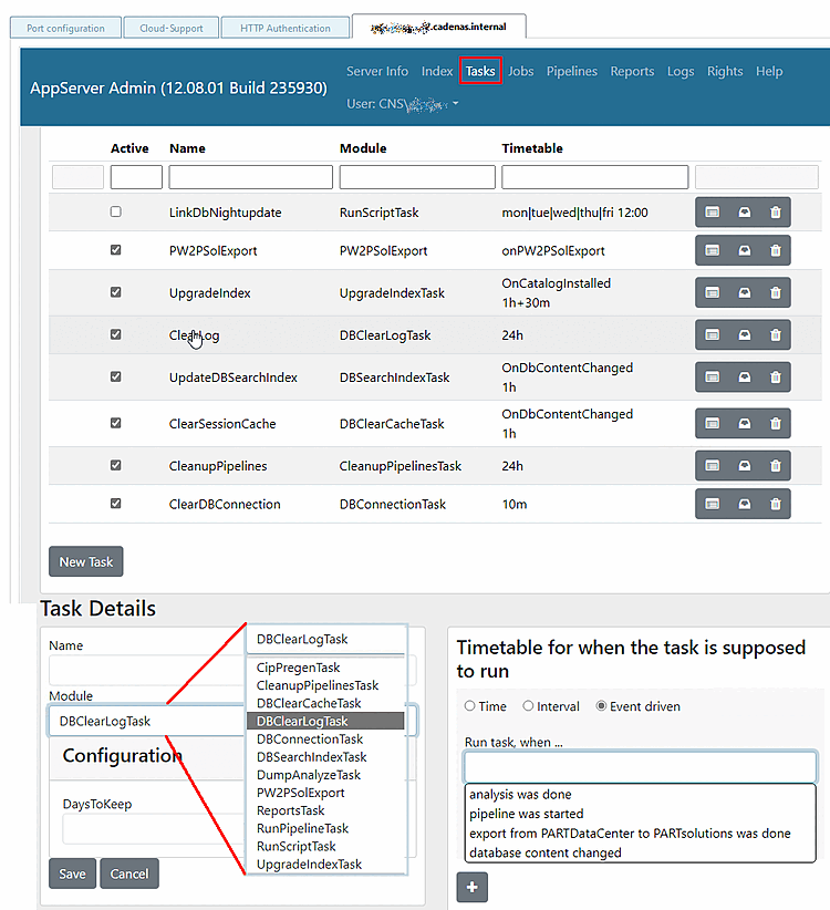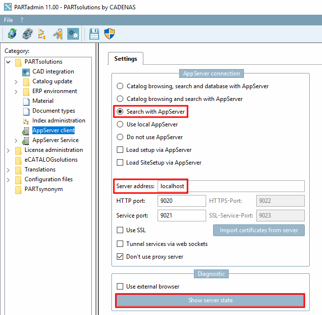 In PARTadmin -> AppServer Client [AppServer client] -> Settings tab page, one of the following options must be selected under Connection to AppServer [AppServer connection]: