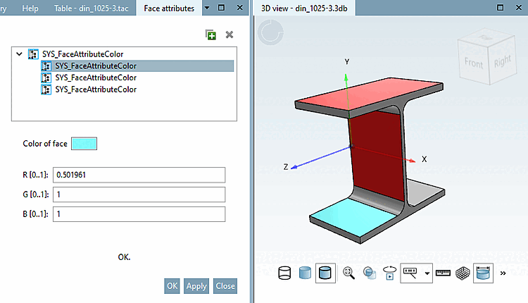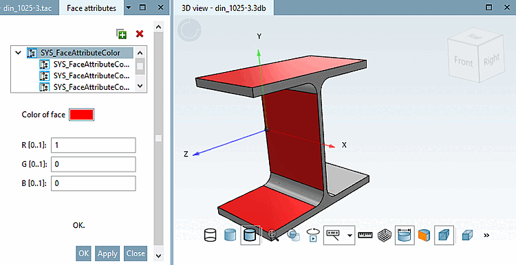 Select the desired attribute and confirm with . Here is an example: SYS_FaceAttributeColor (Class for colored faces)