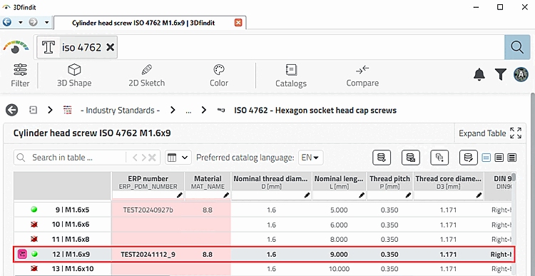 3. For example, change the value 8 from Nominal length (L) to 9, which does not appear in the characteristic attribute table, and confirm with OK.