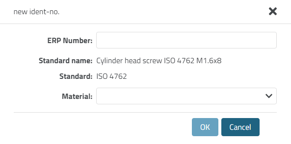 4. Enter the ERP number [ERP Number], select the desired material [Material] and confirm with OK.