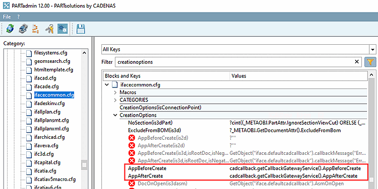 Independently of the specifically used PDM/PLM integration, the two keys "AppBeforeCreate" and "AppAfterCreate" have to be activated mandatorily.