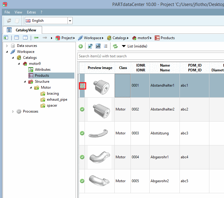 In the structure tree [Structure], select the class to which the product was assigned. The product is now displayed again (as changed