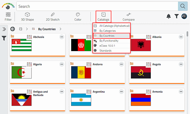 By Countries shows the manufacturer's sales locations (e.g. PARTcommunity Maps / RFQ feature, in 3Dfindit under "About the manufacturer"). The aim is to offer the user effective product procurement in the vicinity of their own location.