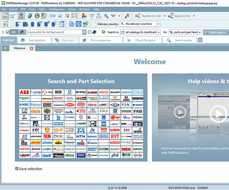 Activate the Save selection option and click in the Search and part selection [Search and Part Selection] area.
